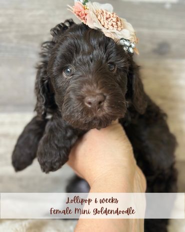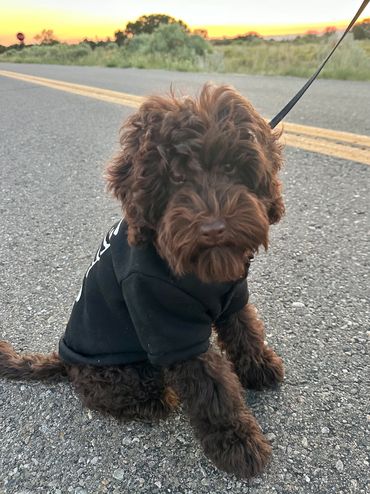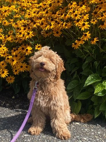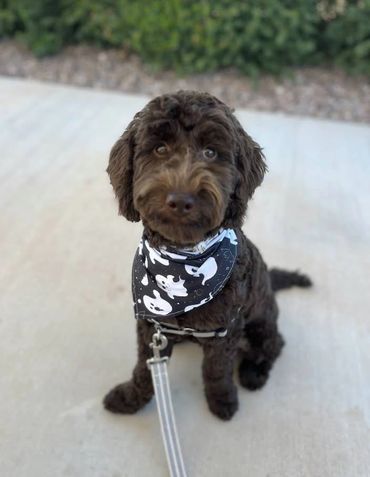 She will be paired coming up this spring 2025 for medium reds, apricots, and chocolates. Solid with white chest and head markings. Wavy or curly coats.